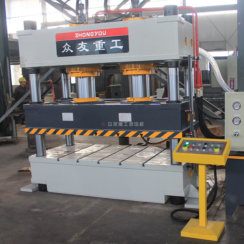 不銹鋼蓋板四柱油壓機中液壓傳動系統(tǒng)包括動力系統(tǒng)、控制系統(tǒng)、傳動系統(tǒng)、輔助系統(tǒng)和工作介質(zhì)。使用中油泵為動力。油壓機為了滿足要求執(zhí)行系統(tǒng)的運動速度,選擇一個油泵或多個油泵。液壓主控系統(tǒng)采用二通插裝閥集成系統(tǒng)。該系統(tǒng)具有結構緊湊、響應快、內(nèi)泄小、動作靈敏可靠、流量大、抗污染能力強,使用維護方便,壽命長等優(yōu)點。